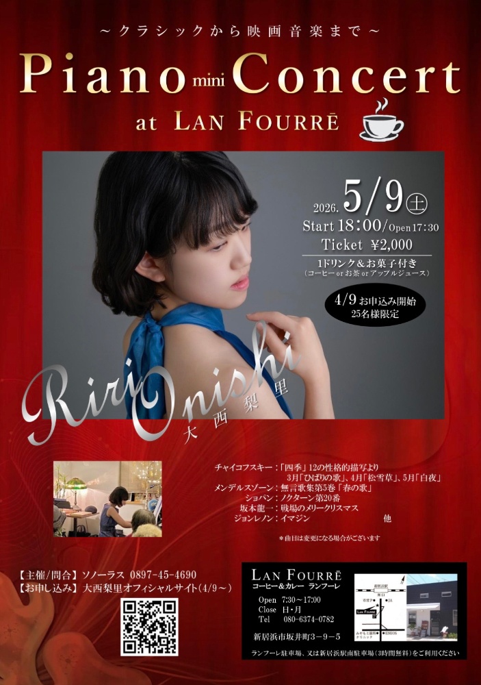 5/9(土) Piano mini Concert at LanFourre